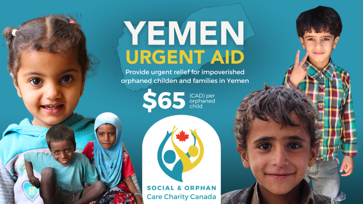 Yemen is currently facing one of the worst humanitarian crisis in the world with millions of children in need for urgent aid. Children in Yemen are grappling with either the consequences of war, violence, political instability, poor economic conditions and poverty. Our organization is active on the ground, serving hundreds of orphaned children and families monthly.Your contributions and support goes along way to those who need it most. Donate any amount to help lift orphaned children in Yemen above poverty.For only: $65 CAD (per month)You can help alleviate poverty for an orphaned child every month. Help us raise funds to...